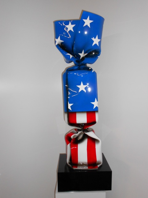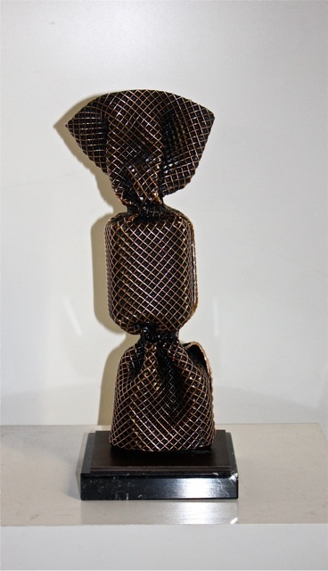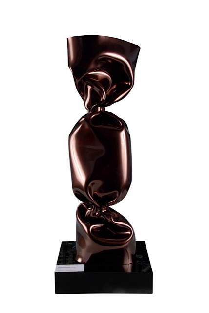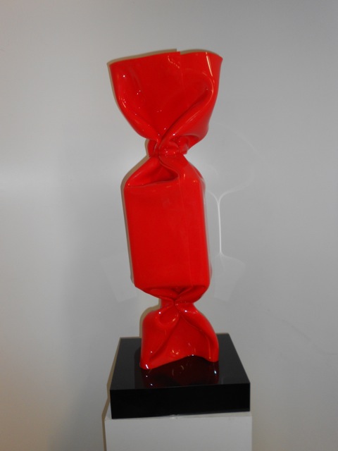 Le wrapping, littéralement l’enroulement de la matière, associée à la torsion de la papillote fait de ses sculptures des oeuvres uniques. Peu à peu, l’artiste va décliner cet objet symbolique dans d’autres matières comme le marbre, le bronze, l’aluminium ou le polyester. Sujet universel, le bonbon de Laurence Jenkell n’est pas seulement symbole de douceur, il est aussi torsion, drapé, enchevêtrement et résistance.
